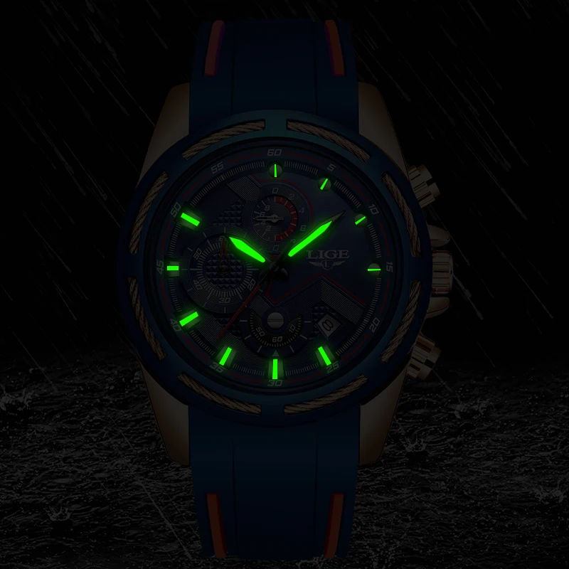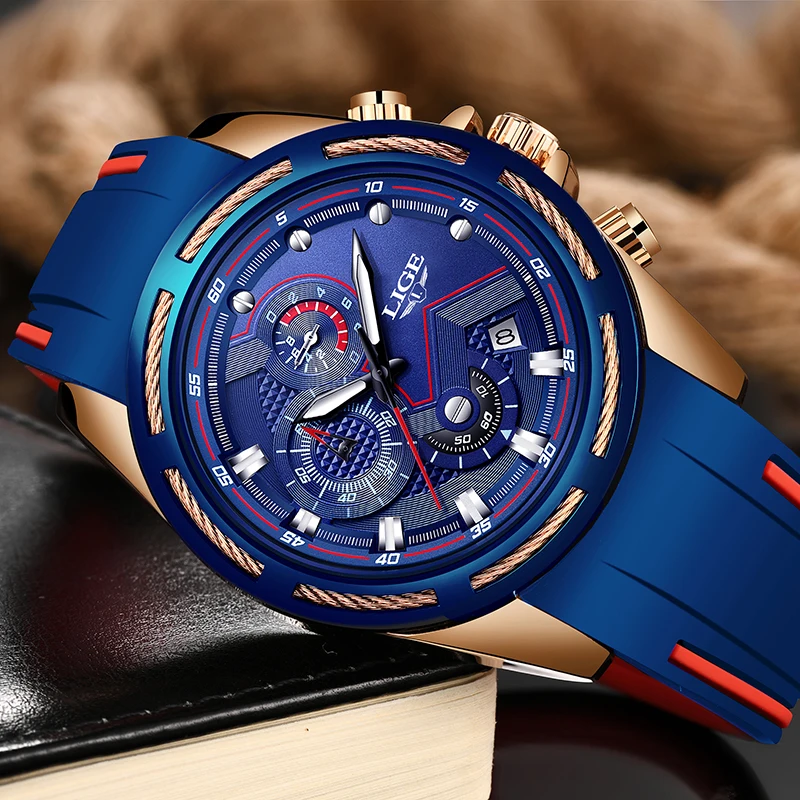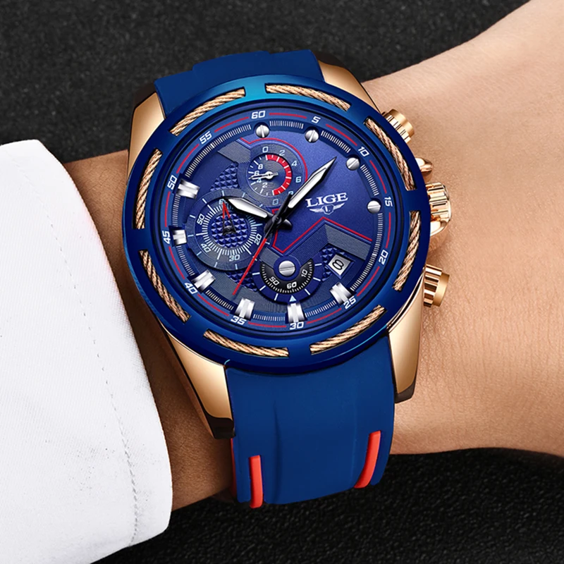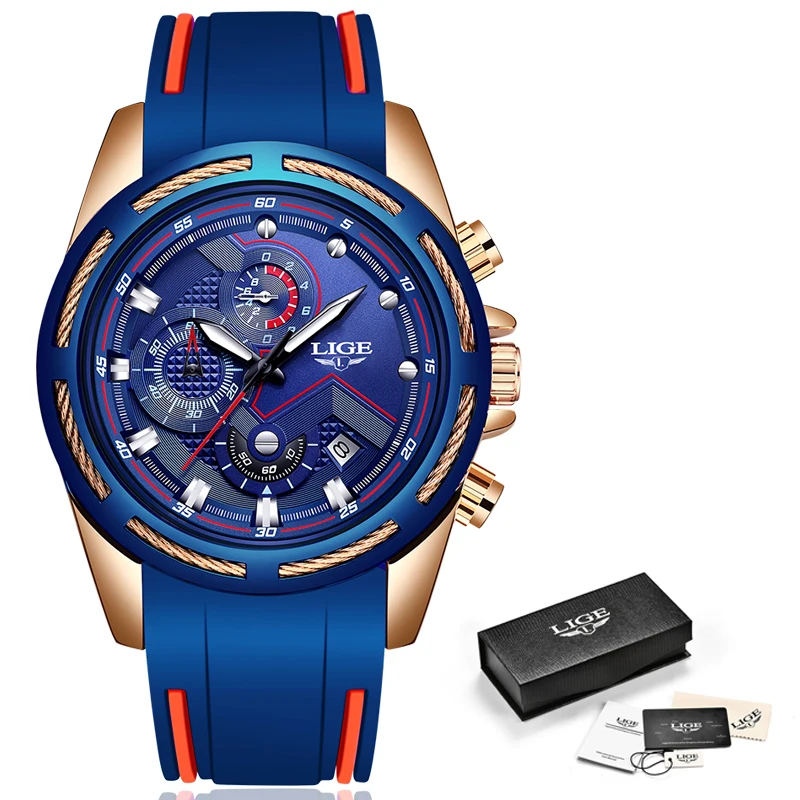 LIGE New Fashion Mens Watches Silicone Strap Top Brand Luxury Waterproof Sports Chronograph Quartz Watch Men Relogio Masculino