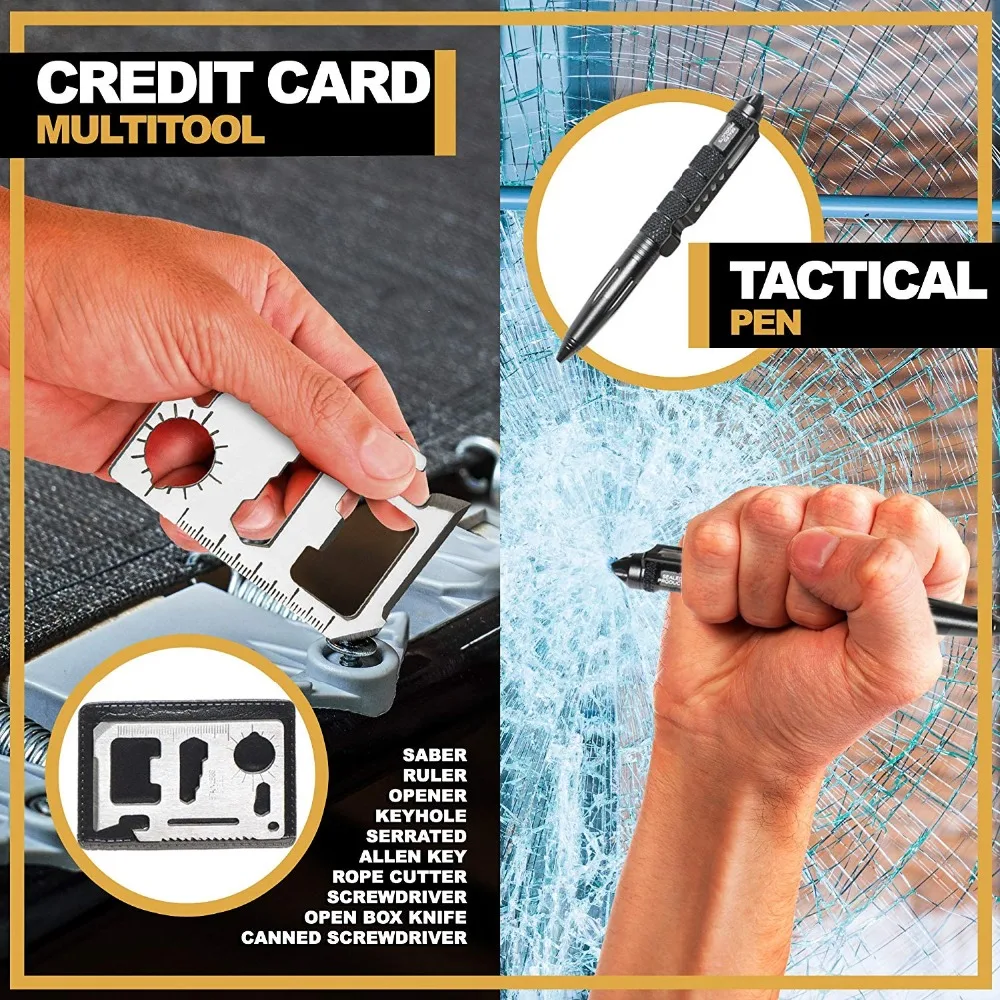 Survival Kit Outdoor Portable Emergency Tourism Equipment Camping Survival Tools Military Travel Kit Whistle,Rescue Tactical Pen